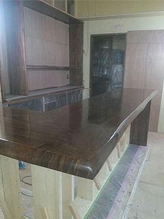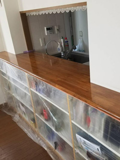 新規オープンに際し、カウンター塗装をご依頼いただきました。手付かずの木材に塗装・防水加工・ツヤ出しを行い、高級感あふれる仕上がりとなりました。