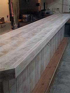 新規オープンに際し、カウンター塗装をご依頼いただきました。木目を白く加工し、保護のためにクリア塗装を施しています。