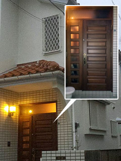 玄関扉の着色、クリア塗装をご依頼いただきました。