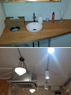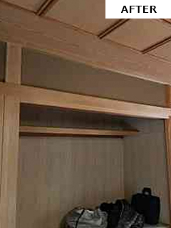 新規オープンに際し、天壁塗装をご依頼いただきました。木部は木目を生かした塗装を提案し、オイルステインを施工いたしました。温かみのある雰囲気に仕上がりました。