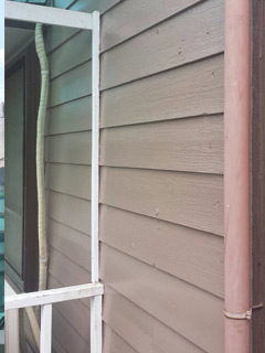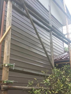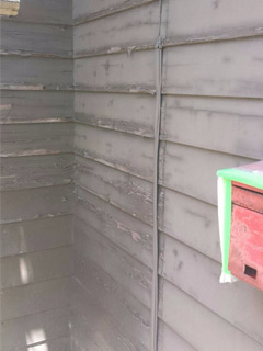 経年劣化に伴い、木部壁の2面塗り替えをご依頼いただきました。下地がかなり傷んでいたので、ケレン作業(汚れやサビ、旧塗膜を落とす作業)から丁寧に仕上げました。