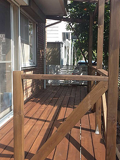 ご依頼主さまがDIYで仕上げた自慢のウッドデッキ。防水処理についてご自分でやることに不安を感じ、当社へご依頼いただきました。防水性能はもちろん、汚れにくい塗料を使用したので耐久性も安心です。